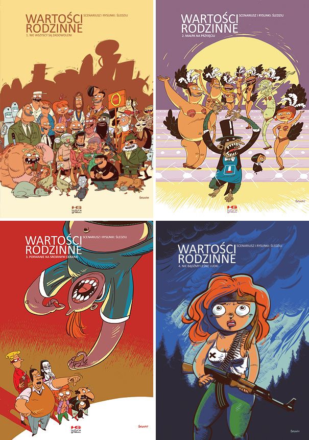 Podczas lektury niejednokrotnie można odnieść wrażenie, ze ważniejsze od ciągłości akcji całości cyklu są pojedyncze sceny czy sekwencje. To na nich oparł się Śledziu – na krótkich żartach, uszczypliwych uwagach, trafnych komentarzach, ostatecznie nawet na wizualnie chwytliwych motywach, że odniosę się tylko do okładki czwartego zeszytu, która przedstawia Elżbietę pod postacią kobiecej wersji Johna Rambo, co zresztą samemu autorowi sprawiło wielką frajdę. To z wyżej wymienionych powodów czytelnik lepiej zapamięta wybrane sytuacje czy dialogi (i to też podług własnego gustu – niekoniecznie te obiektywnie najzabawniejsze) niż finał „Wartości rodzinnych”. Uważam, że to plus tej serii.