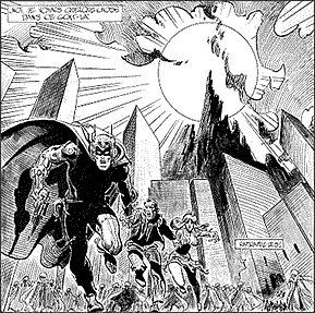 rysowane komiksy amerykańskie. Przykładowy kadr umieszczony poniżej,
