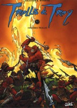 W tej serii powracamy do dobrze znanych realiów świata Troy. Scenariusz do niej napisał oczywiście Arleston. Grafikiem natomiast, na miejsce Tarquina, został Jean-Louis Mourier (i trzeba przyznać, że autor ten wywiązał się ze swej roli całkiem nieźle). Akcja "Trolli z Troy" rozgrywa się na długo przed wydarzeniami opisanymi w "Lanfeuście z Troy". Jej głównymi bohaterami są: Troll Tetram, jego przybrana córka Waha, a także młody pół-troll imieniem Profi. Waha fizycznie jest człowiekiem. Została adoptowana przez Tetrama i jego żonę Picipelę (zawsze mi się podobało to imię ;>) po tym, jak skonsumowali jej ludzkich rodziców. Pewnie by nie przeżyła, ale jej nowym "opiekunom", jakoś tak zabrakło miejsca w brzuszkach, a potem przywiązali się do dziecka, a nawet pokochali i zaczęli traktować jak rodzinę. A rodziny (nawet jeśli jest człowiekiem) żaden porządny troll nie zje - przecież to nie wypada. I tak mała Waha została adoptowaną córką Tetrama i wyrosła na prawdziwą, drapieżną Trollicę. Profi natomiast jest owocem upojnej nocy pomiędzy mamuśką Trollicą (która lubiła odmianę i nowości), a tatuśkiem, który był odważnym wieśniakiem.