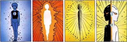 Arch-villain (z ang. arcywróg) - czyli główny rywal konkretnego bohatera, lub czasem (ale to naprawdę rzadko) jego wrogi duplikat. W odróżnieniu od normalnych przeciwników, z jakimi styka się bohater, arcywróg zazwyczaj zna bardzo dobrze zarówno jego silne punkty, jak i słabości i bezwzględnie je wykorzystuje, co powoduje, że pojedynki pomiędzy nimi są niezwykle zajmujące. Arcywróg nierzadko zna też alter-ego, czyli drugą (tajną) tożsamość bohatera. Przykładami arcywrogów są : Lex Luthor dla Supermana, Green Goblin dla Spider-Mana, Joker dla Batmana i Magneto dla X-Men. Zazwyczaj, samo pojawienie się arcywroga w zeszycie jest w stanie, nawet kilkakrotnie zwiększyć sprzedaż danego numeru. BD (bande dessinée) - po prostu "komiks" w języku francuskim. Bubble gum colors - Jest to rodzaj kolorystyki, używanej w komiksach, której cechami charakterystycznymi są żywe, krzykliwe kolory podobne do tych, z jakimi mamy do czynienia w "historyjkach" z gum balonowych (stąd właśnie wzięła się ta nazwa). Takiej kolorystyki używał w swoich pracach (szczególnie tych o tematyce fantastycznej) Francuz Jean Giraud, szerzej znany jako Moebius. Zamieszczone poniżej kadry pochodzą z serii "Incal".