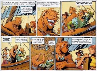 "do pomocy", postanawiają w końcu zdezerterować i płyną wpław do wyspy,