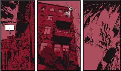daje to bardzo ciekawy efekt. Cały komiks utrzymany jest w tonacji różowo-czerwonej,