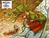 bogaty świat, narysowany z dużą swobodą, pełny dziwnych postaci i