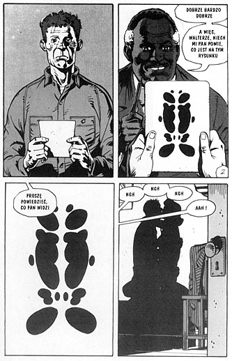1. Scena z komiksu Alana Moore'a i Dave'a Gibbonsa
