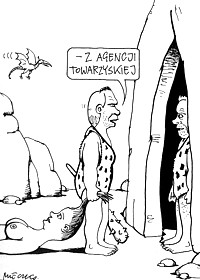 scenki z życia jaskiniowców, nieznacznie tylko zakamuflowane,