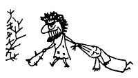 obrazek ukazujący mężczyznę z maczugą, ciągnącego za włosy