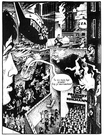 się ze sprawiających wrażenie pobrudzonych rysunków, komiks