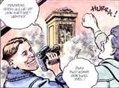 ufoludków, zachęconych przez reklamy biura podróży. Rysownik tworzy plastyczne,