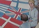 obrazek Annie Goetzinger, na którym panie zszywają flagi krajów wschodu