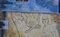 z tej "komiksowej" konwencji w styl rysunków z dziecięcego zeszytu.