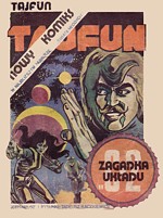 Oto komiks, który jest już w dzisiejszych czasach jedynie legendą. Żadna część tej serii s-f nigdy nie ukazała się drukiem w albumie komiksowym. Jedyne wydanie pojawiło się w gazecie harcerskiej o wdzięcznym tytule "Świat Młodych". W ramach serii wyszły cztery, ale nie powiązane bezpośrednio ze sobą, części. Dwie pierwsze sygnowane były znakiem serii: Tajfun, dwie ostatnie już nie. Dlaczego? To już, myślę, słodka tajemnica autora (zarówno scenariusza, jak i rysunków), Tadeusza Raczkiewicza.