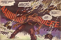 Tak właśnie rozpoczyna się ta część przygód Tajfuna. Dalej mamy już coś jak połączenie King-konga z Godzillą. W porównaniu z poprzednią częścią, ta ma bardziej futurystyczny charakter (pojazdy latające, czołgi, miasta). Rysunkowo i scenariuszowo prezentuje się dobrze, chociaż nie porywa. Ożywiony przez naukowców Grogon, zostaje porwany przez żądnego władzy despotę -Venege i tylko trójka naszych bohaterów może uratować Ziemię przed zniszczeniem przez małpoluda. Nie muszę nadmieniać, że i ta część (tak jak poprzednie) kończy się happy-endem. Zło zostaje ukarane, a z morderczego małpoluda, operacyjnie stworzono sympatyczne zwierzątko dla uciechy dzieci...