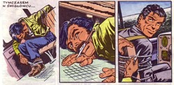 przypomina przygody dzielnego "Kapitana Żbika". Rysunki Wróblewskiego