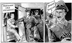 Klossa obrazek z okupowanej Warszawy. Wszystko to archaicznie narysowane