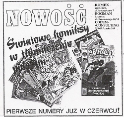 mówiącej treści: "Amerykańskie komiksy po polsku! Już od czerwca!".