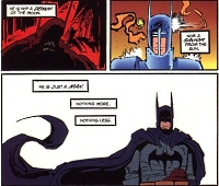 będzie zetknięcie się z samozwańczym obrońcą miasta, Batmanem. Nie pojmuje