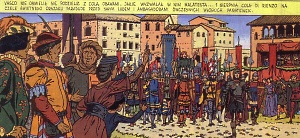 Postać Vasco stworzył Gilles Chaillet w 1978 roku dla magazynu "Tintin". Dzięki przygodom młodego Włocha, autor pokazał nam mało znane średniowiecze, gdzie o losach Zachodu nie decydowali już rycerze, ale bankierzy. Graficznie album zaskakuje przepięknie rysowaną architekturą średniowiecznych Włoch. Z prawdziwą przyjemnością można śledzić przygody Vasco obserwując bardzo szczegółowo rozrysowane kadry. Na uwagę, poza architekturą, zasługują również szczegółowo przedstawione ówczesne ubrania, zbroje itd.