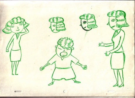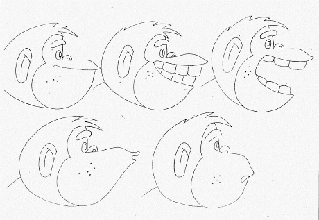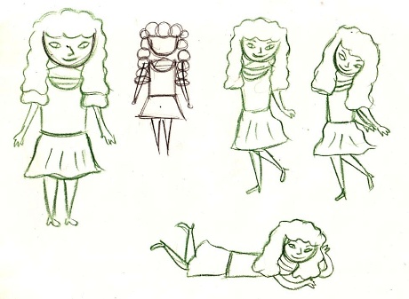 Szkice animacyjne postaci według projektu Santiago Cohena do kreskówki "Kotek kłopotek"