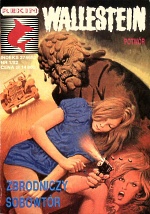 Seria "Wallestein - Potwór" (Wallestein il Monstro) zaczęła wychodzić już w latach 70-tych, jest bardzo długa i znana wszystkim miłośnikom horrorów. Mimo długich poszukiwań nie udało mi się do tej pory znaleźć oryginalnej okładki z której pochodzi wydany w Polsce tomik. Nie udało mi się również namierzyć autora odpowiedzialnego za powstanie rysunków w tym "epokowym" dziele. Wiele z albumów "Wallesteina" powstało dzięki Mario Cubbino, czy również i ten - nie mam co do tego pewności.