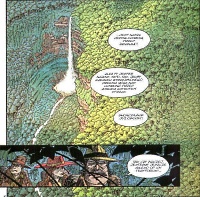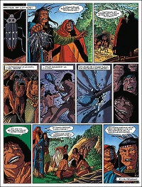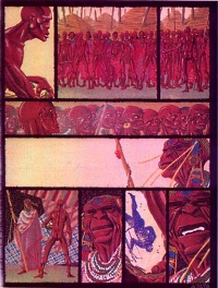 Innym przykładem, może nawet bardziej portfolio niż komiksu, jest bardzo rzadki album "La Messagere" - "Posłannica", wydany przez Jonas w 1985 roku w nakładzie zaledwie 650 egzemplarzy, wszystkie numerowane i podpisane przez autora. Nie udało mi się go kupić, ale na szczęście zawiera on tylko 10 plansz, opublikowanych w całości w tomie "Andreas, Une Monographie". Opowiada on historię szamanki niosącej ludowy symbol do wymarłego miasta. A skoro już mowa o tym wydawnictwie - książka prezentuje także kilka szkiców do albumu "Aztekowie".