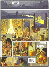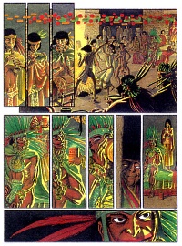 Właśnie dni poprzedzające przybycie okrętów Hernana Corteza stały się materiałem do opowiedzenia przez Andreasa kilku historii z codziennego życia jednego z najpotężniejszych imperiów w historii ludzkości. Jeśli ktoś oglądał "Apocalypto" poczuje się znajomo, bo wiele motywów jest bardzo zbliżonych, może nie na tyle, żeby zakładać, że Mel Gibson czytał komiks Andreasa, ale wystarczająco, żeby zwrócić uwagę na podobieństwa i nieuniknione różnice.