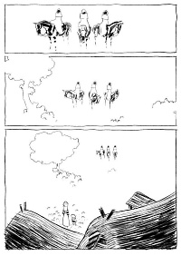 Sielanka Louisa, jego żony Lise oraz ich synka Joachima trwa do momentu, w którym nieopodal położonego w niemalże idyllicznej dolinie domu pojawiają się obcy jeźdźcy. Niczym przybyłe niespodziewanie do Shire upiorne Nazgule, trzy cienie burzą spokój radosnej rodziny i zmuszają ją do podjęcia bardzo trudnych decyzji. Komiks Cyrila Pedrosy czyta się niczym baśń, lecz ukryty pod płaszczem sympatycznych ilustracji realizm i niesione przez historię przesłanie chwilami sprawiają, że raczej niechętnie chce się poznać wypływający z niej morał i maksymę wieńczącą całość.