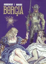 Rodem Borgiów Jodorowsky zainteresowa³ siê jeszcze na pocz±tku lat siedemdziesi±tych, kiedy wraz z Irm± Serrano przygotowywa³ w Meksyku przedstawienie sztuki teatralnej zatytu³owanej "Lukrecja Borgia". Spory i k³ótnie doprowadzi³y wówczas do fiaska wspóln± realizacjê przedstawienia i ka¿de z re¿yserów kontynuowa³o swoj± w³asn± wizjê. Przedsiêwziêcie Jodorowsky'ego skoñczy³o siê ca³kowit± kap±, niemniej, jak widaæ, historia Borgiów okaza³a siê na tyle inspiruj±ca, ¿e po latach Chilijczyk postanowi³ do niej powróciæ. Tym razem w formie komiksowej. Scenariusz przez niego napisany to przede wszystkim mieszanina kolejnych intryg, skandali, obrazów przemocy i seksu. Fabu³a stanowi niestety tylko pretekst do ukazywania sensacyjnych scen. O ile mog³o to ekscytowaæ w pierwszym albumie serii, to od Jodorowsky'ego chcia³oby siê oczekiwaæ, i¿ wzbogaci opowie¶æ, miast epatowaæ odbiorcê kolejnymi obrazami demoralizacji i okrucieñstwa, gdy¿ te, pocz±wszy od tomu drugiego, nie wnosz± wiele do opowie¶ci. Zamiast pe³niæ rolê ¶rodka nadaj±cego koloryt ciekawej historii, s± podstaw±, na której zbudowany jest ca³y komiks.