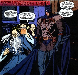 Bob Kane, pytany o inspiracje przy tworzeniu postaci Batmana, dość często powołuje się na szkice Leonardo da Vinci, zwłaszcza te dotyczące mechaniki lotu i konstrukcji maszyny latającej o nietoperzych skrzydłach. Wydaje się jednak, że związki Mrocznego Rycerza i wielkiego twórcy sięgają znacznie dalej niż podobieństwo kostiumu. Wszak Leonardo do dziś postrzegany jest jako archetyp "człowieka renesansu", najbardziej wszechstronnie utalentowanego człowieka wszechczasów. Jego historia - podobnie jak Batmana - to próba dotarcia do granic ludzkich możliwości i przekroczenia ich, tym samym metamorfoza w coś więcej niż człowieka. Stania się nieśmiertelnym symbolem.