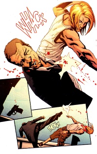 Podobnie zresztą wypada określić graficzną oprawę niniejszego komiksu. Ascetyczna, ale zarazem realistyczna kreska dalece kontrastuje z manierą zastosowaną w miesięczniku "GA v.3", gdzie z reguły preferowano styl "animacyjny" (np. w wydaniu Scotta McDaniela). "Jock" skupia uwagę czytelnika na postaciach traktując tło jedynie pretekstualnie. Można by rzecz z odrobiną ironii: "Nie chciało się chłopu przysiąść nad rysownicą". Nic z tych rzeczy! Ta celowa metoda ilustracyjna idealnie wpisuje się w dramaturgie fabuły rozgrywającej się w głównej mierze w scenerii bezludnej wyspy (choć jak wyżej wspomniano tamtejsze realia okazują się zgoła odmienne niż mogło się to pierwotnie wydawać). W początkowych partiach Ollie mało jeszcze przypomina dobrze znaną postać pretensjonalnego anarchosyndykalisty. Rozpieszczony, duży dzieciuch musi jednak dorosnąć, co przejawia się także w jego wyglądzie fizycznym. Można zaryzykować tezę, że "Jockowi" udało się uchwycić tę metamorfozę. Dynamika scen konfrontacyjnych - a takowych tu nie brak - również jest bez zarzutu. Dla zwolenników realistycznych, finezyjnych ilustracji zsyntetyzowana, a tym samym uproszczona stylistyka może wydać się początkowo nie do przyjęcia. Prędko jednak można się doń przyzwyczaić, a okładki poszczególnych epizodów, również autorstwa rzeczonego, to udane połączenie wyrazistej kreski i soczystych plam udatnie dynamizujących całość kompozycji.