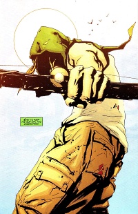 I to właśnie na tle tych zmagań mamy okazji być świadkami ewolucji osobowości niegdysiejszego "Piotrusia Pana" dojrzewającego w przyspieszonym tempie do roli obrońcy uciśnionych (jakkolwiek pompatycznie by to nie brzmiało). Równocześnie "GA:Year One" moglibyśmy zdefiniować jako opowieść o przełamywaniu własnych słabości i odnalezieniu samego siebie. Piszący te słowa zdaje sobie sprawę, że brzmi to niczym zestaw płaskich komunałów; niemniej ujęcie zaproponowane przez duet Diggle/"Jock", mimo podjęcia nie nowej przecież fabuły, okazało się na tyle atrakcyjne, że przyciągnęło do mini-serii liczne grono czytelników rzadko sięgających po perypetie "Szmaragdowego Łucznika". Również pośród krytyków dało się słyszeć donośny pomruk aprobaty. Tym samym omawiana inicjatywa stała się niezbędnym wręcz "świeżym łykiem powietrza" dla wszystkich tych ze znużeniem śledzących poczynania Judda Winicka, swego czasu dobrze zapowiadającego się scenarzysty (w swojej klasie bardzo udana opowieść "Straight Shooter" - "Green Arrow vol.3" nr 26-31). Bowiem eksploatowana w "Year One" do bólu wręcz realistyczna konwencja znacznie bardziej odpowiadała stylistyce Mike'a Grella czy Danny'ego O'Neila, postrzeganej obecnie jako optymalna dla tej postaci. Znaczna część fanów tęskni właśnie za takimi opowieściami, toteż okoliczność braku odzewu na ów wyraźnie dostrzegalny popyt skłania do zastanowienia co do kompetencji decydentów DC Comics. Chciałoby się w tym miejscu odnieść do "wielbionego" przez wielu Dana Dido, koordynatora poczynań wspomnianego wydawnictwa. Niemniej wymagałoby to użycia zbyt dosadnych sformułowań określanych mianem inwektyw... Pewne jest, że miast kontynuować przeróbkę wizerunku Ollie'go Queena według pomysłu Andy'ego Diggle'a (trochę na zasadzie marvelowskiej linii "Ultimate"), na stanowisku głównego kreatora dziejów tej postaci pozostawiono Winnicka, który chyba jak nikt przed nim ma skłonność do, pisząc obcesowo, partolenia własnych pomysłów.