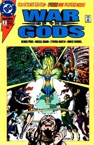 George'a Pereza, rozpoczynającego swą karierę rysownika w dobie drugiej połowy lat siedemdziesiątych, wypada uznać za wybitnego przedstawiciela tamtej epoki w komiksowej grafice. Tendencji ku realistycznemu rysunkowi według szlaku wytyczonego przez Neala Adamsa ulegli niemal wszyscy wybitniejsi ilustratorzy tworzący na zlecenie DC Comics. Dick Giordano, Jim Aparo czy Mike Grell to jedynie co bardziej sławetniejsze nazwiska z grona ówczesnych twórców odpowiedzialnych za oprawę graficzną tytułów wspomnianego wydawcy. Podobnie jak i oni, także Perez celował w tej manierze, czego dał dowód na kartach miesięcznika "The New Teen Titans" realizowanego do scenariuszy Marva Wolfmana. Przez kolejne lata dane mu było pracować przy licznych seriach DC, a za jego główne osiągniecie zwykło się uważać zilustrowanie "Kryzysu na Nieskończonych Ziemiach", wydarzenia, które jak wiadomo na zawsze odmieniło wspomniane Uniwersum. Rzeczony rysownik konsekwentnie dopracowywał swój warsztat umiejętnie komponując kadry z udziałem licznych bohaterów (co jak pokazuje przykład przywoływanego wyżej Joe Statona i jego "Millenium" nie należało do łatwych zadań). Stąd właśnie Perez wydawał się w pełni predestynowany do tworzenia tego typu opowieści. "War of the Gods" zdawało się szansą na powtórkę "Crisis on Infinite Earths" w miniaturze.