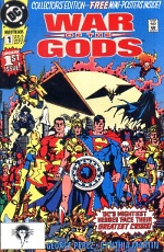 "War of the Gods" jak do tej pory nie doczekało się zbiorczego wydania, być może z tego względu, że dla bywalców portali licytacyjnych oryginalne zeszyty tej sagi są w miarę łatwo dostępne. Mimo wszystko szkoda, bo publikacja całości, dajmy na to z dodatkowymi szkicami koncepcyjnymi czy wspominką George'a Pereza, mogłoby stanowić nie lada gratkę dla wielbicieli post-kryzysowej formuły komiksów DC. Nade wszystko jednak niniejsza opowieść zyskałaby wizualnie, gdyby wydano ją na lepszym jakościowo papierze niż miało to miejsce w przypadku pierwowzoru. Widać to zresztą na przykładzie "Kryzysu na Nieskończonych Ziemiach", którego wydanie albumowe z 2000 roku właśnie za sprawą śliskiego papieru, prezentuje się znacznie lepiej niż o piętnaście lat starsze zeszyty. Szczegółowa, detaliczna kreska Pereza, dopracowana równie finezyjnym tuszem m.in. Ordwaya, nabiera w takiej jakości edytorskiej nowych walorów. I tak też zapewne byłoby w przypadku "War of the Gods", sagi może nie szczególnie ambitnej i wyszukanej, niemniej stanowiącej przykład pewnej konwencji królującej na kartach DC Comics pomiędzy rokiem 1985 a 1991. Biorąc pod uwagę okoliczność, iż ów wydawca ostatnimi czasy decyduje się na powtórne zaprezentowanie opowieści z tego okresu ("Millenium", "Invasion!", zbiorcze wydania "The Question" według Danny'ego O'Neila) można optymistycznie założyć, że niebawem doczekamy się w podobnej formule wznowienia także "War of the Gods". Pomimo konwencji fabularnej, od której zapewne niejednego, bardziej wysublimowanego czytelnika rozbolałyby zęby, jest na swój sposób klasyk, znacznie przewyższający wcześniejsze o kilka lat "Millenium" oraz "Invasion!". I właśnie w tych kategoriach winno się postrzegać i interpretować ów tytuł, bez nadmiernego popadania w prezentyzm, a przez to porównywania z współczesnymi tego typu produkcjami.