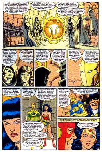 W tym całym mętliku nie zabrakło także ziemskich superbohaterów, którzy jak zawsze w takich sytuacjach nie pozostali biernymi w obliczu rozwoju niepokojących wypadków. Przeważająca ich część - Superman, Starman, Firestorm czy Captain Marvel - podjęła się rozwiązywania zaistniałego kryzysu w tradycyjny dlań, siłowy sposób, równocześnie nie w pełni zdając sobie sprawę z jego przyczyn. Inna grupa, znacznie bardziej wtajemniczona w arkana mistycyzmu, podejmuje stosowne kroki, by powstrzymać perturbacje rzeczywistości wywołana za sprawą machinacji Circe. Phantom Stranger, Spectre, Dr Fate, a nade wszystko Geo-Force i, któżby inny, Wonder Woman podejmują się arcytrudnego zadania przywrócenia równowagi we Wszechświecie. Czy ich wysiłki zakończą się sukcesem? Jakżeby inaczej! W końcu konwencja superbohaterska ma swoje prawa... Czasami niestety do znudzenia przewidywalne...