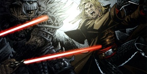 Jak pisałem na początku, historia opiera się na pozornie samobójczej misji Cade'a, który pragnie ocalić uzdrowiciela Jedi - Hoska Trey'lisa, gdyż jak tłumaczy, nie chce żeby ktoś się za niego poświęcał. Jak można się jednak domyślić, złowieszczy Darth Krayt widzi dla młodego Skywalkera zupełnie inną przyszłość. Cienka linia dzieląca naszego (anty?)bohatera od Ciemnej Strony Mocy powoli zaczyna zanikać. Czy Cade zostanie nowym Sithem? Czy ocali Hoska? Jak potoczy się konspiracja pewnego Moffa? Co zresztą załogi "Mynocka"? I jakie tajemnice swojej przeszłości zdradzi Krayt? Tego nie dowiecie się z tej recenzji, lecz z lektury komiksu. Ja jedynie chciałbym wam, drodzy czytelnicy, powiedzieć, czy to wszystko ma jakiś sens. Otóż ma. Ba, ma nawet więcej sensu niż by się wydawało. Cade, jak na Skywalkera przystało, postanawia, że "poudaje trochę Sitha" i gdy będzie trzeba wróci na Jasną Stronę. Znamy to skądś, prawda? Tak na marginesie, główne hobby tego bohatera to wskrzeszanie zmarłych, bądź uzdrawianie konających. O dziwo podczas lektury jakoś to specjalnie nie razi. Pomysły pozornie durne, tu sprawdzają się wyśmienicie i nawet, gdy widać ich wtórność, nie bije ona po oczach tak bardzo, jak mogłoby się wydawać. Jakimś cudem John Ostrander po wymieszaniu starych motywów z nowymi, nie do końca racjonalnymi, uzyskał nie tylko mieszankę strawną, a nawet całkiem smakowitą.