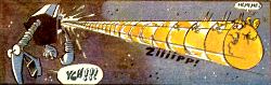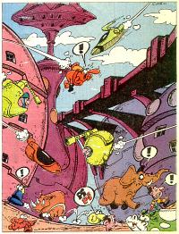 Ten komiks jest całkiem odmienny rysunkowo od poprzedniego. Kreska jest "gładka", postacie są ładne, bardziej odpowiednie dla młodszych czytelników. Tylko na kilku pierwszych stronach, gdzie przedstawiona jest planeta Kini, widać rysunki znane z "Gwidona i Giwi" przy całej gamie potworów: Skałojadów, Kombajno-drwali czy Dżdżownic szablozębnych. Cały komiks jest dość zabawny i bardzo zgrabnie przedstawiony.