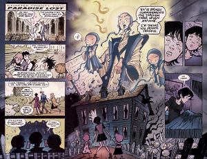 Przyjęło się kojarzyć Mike'a Careya z ciężkimi, brutalnymi komiksami, często łączącymi elementy mitologiczne z folklorem. Mit i siły nadprzyrodzone pojawiają się w "My Faith In Frankie", ale daleki jestem od wiązania tej małej mini-serii z epickim "Lucyferem" czy osadzonym w japońskiej kulturze "Crossing Midnight". Trudno mi jest porównać tą pozycję do jakiejkolwiek z oferty Vertigo. Spytajcie sami siebie - często macie okazję czytać komiks z tego imprintu będący komedią romantyczną?