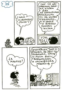 Mam nadzieję, że kiedy ponownie "Mafalda" zajrzy do Polski (w końcu od jej ostatniego pobytu minęło już 25 lat), to polski wydawca również zastosuje ten sam ciekawy zabieg z pisownią.