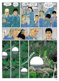 Rzecz jasna nie mogło zabraknąć oryginalnych gatunków zwierząt i roślinności z pozoru przypominających ziemskie formy zajmujące zbliżone nisze ekologiczne. Niestety chwilami ma się odczucie przekombinowania ze strony autora. Z kolei obecna tu tzw. golizna sprawia wrażenie zaistniałej na siłę, jakby pod wpływem sugestii wydawcy węszącego zwiększone zyski. Niniejsza taktyka przypomina nieco metodę stosowaną przez Serpieriego, znanego przede wszystkim z jego cyklu o Druunnie. Jak zapewne pamiętają osoby zaznajomione z tą serią, wystarczył byle pretekst (np. wzmożona radiacja), by ze szczodrze obdarowanej przez naturę bohaterki "wyeliminować" odzież. Podobnie rzecz się ma z Kim, wzbudzającą momentami nadmierne zainteresowanie męskich bohaterów niniejszej opowieści. Zresztą rzeczona nie stroni od ich towarzystwa, obdarowując swymi wdziękami niejednego z nich... Nie byłoby to tak bardzo problematyczne, gdyby nie fakt generowania przy tej okazji żenujących w swej treści wypowiedzi ("Jak tylko cię ujrzałem, zakochałem się w tobie do szaleństwa")... Choć generalnie od strony dialogowej jest tu zazwyczaj przyzwoicie.
