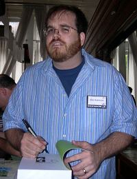 3. Oto twórca mojego ulubionego stwora komiksowego roku 2009, który prezentuje się jak biały jamochłon (znaczy stwór, nie twórca). Sam autor nie wygląda może na zakapiora, ale jakby go spytać skąd ma tą czarną papę, to pewnie by się okazało, że skroił Neila Gaimana na zlocie fanów "Twilight". Co dowodzi, że tylko najtwardsi zawodnicy wkraczają na komiksowe szczyty tak jak dokonał tego Shaun Tan - nowa nadzieja komiksu z antypodów.